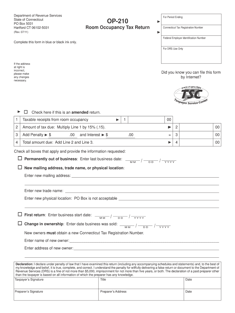 Get the free Connecticut Room Occupancy Tax Return