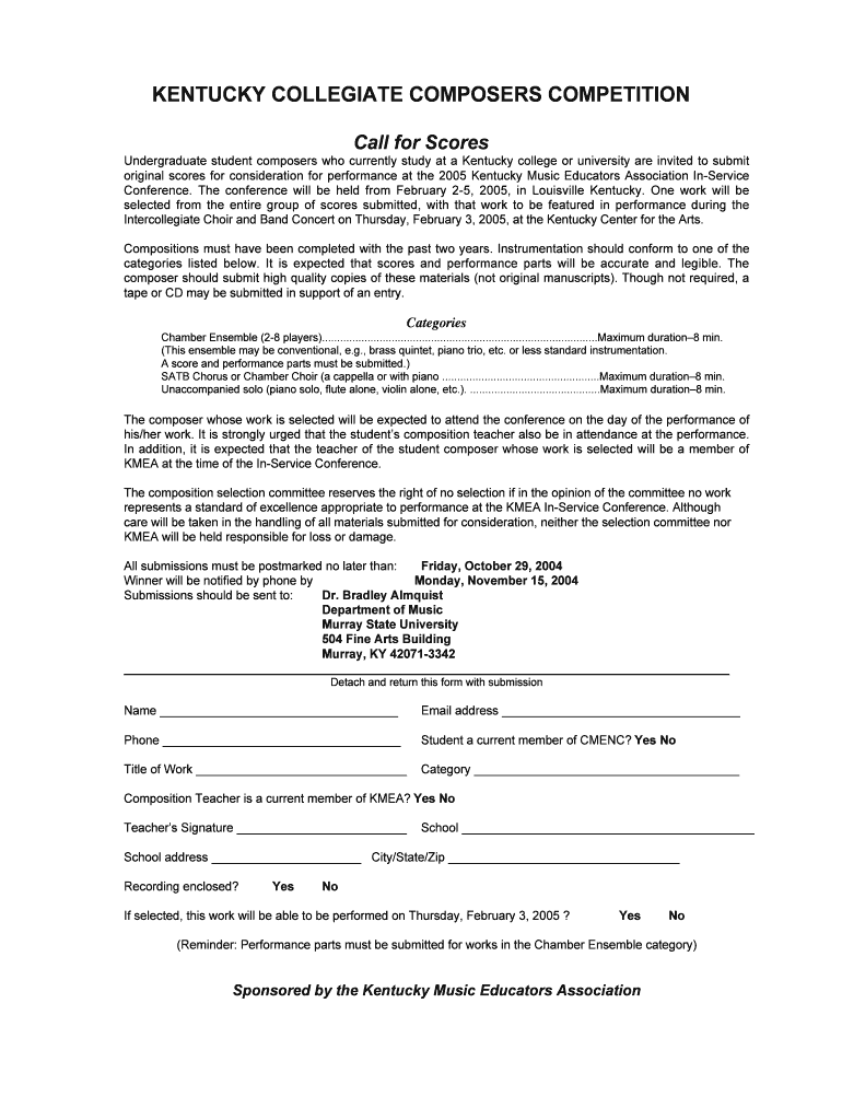 Get the free Kentucky collegiate composers competition - Kentucky Music ... - kmea