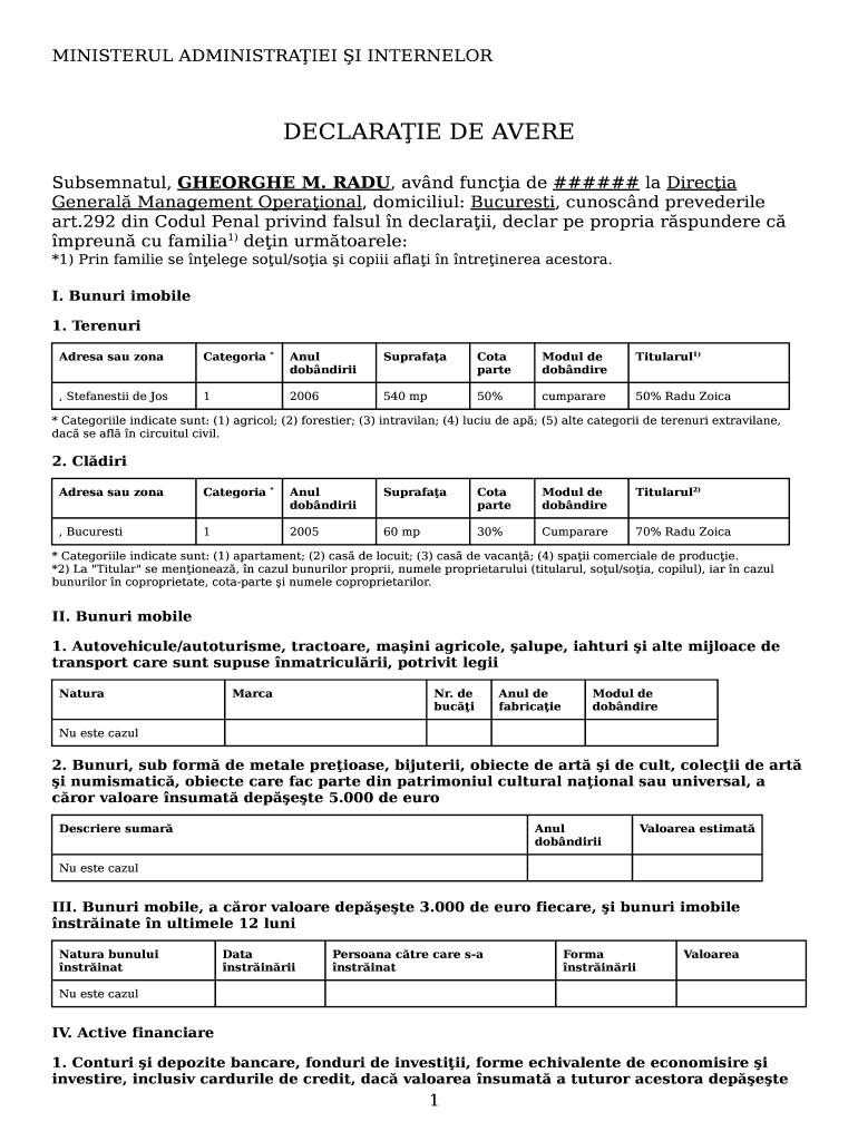 Sample or Example of a Completed Romanian Asset Declaration Form