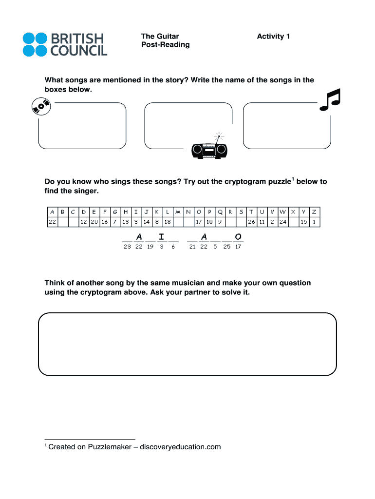 Guitar Activity Worksheets serve as educational tools that aid in enhancing reading comprehension skills. These worksheets offer a variety of activities designed to engage students in meaningful learning experiences. Activities include song identification, solving puzzles, continuing stories, highlighting vocabulary, and building sentences. By incorporating these exercises, educators can effectively facilitate reading comprehension exercises through the use of engaging educational PDFs.