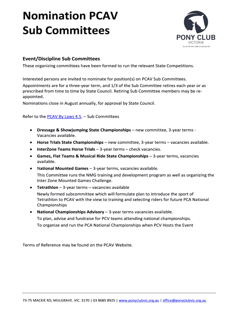 Get the free Nomination PCAV Sub Committees - ponyclubvic.org.au