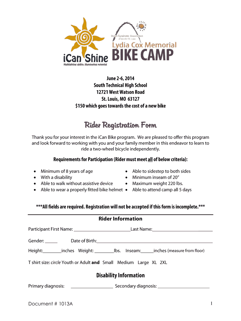 Get the free Rider Registration Form