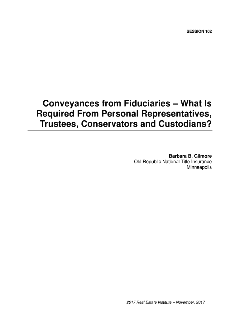 SESSION 102Conveyances from Fiduciaries What Is Required From Personal Representatives, Trustees, Conservators and Custodians? Barbara B. Gilmore Old Republic National Title Insurance Minneapolis2017