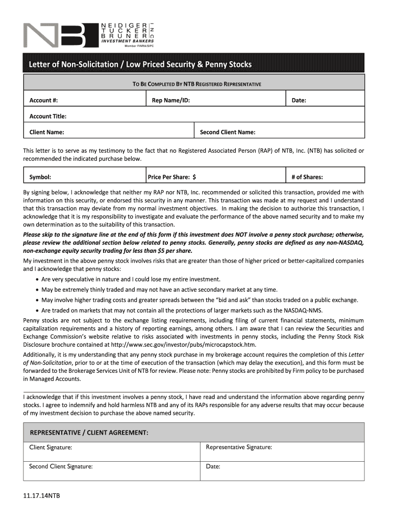 LetterofNonSolicitation/LowPricedSecurity&PennyStocks