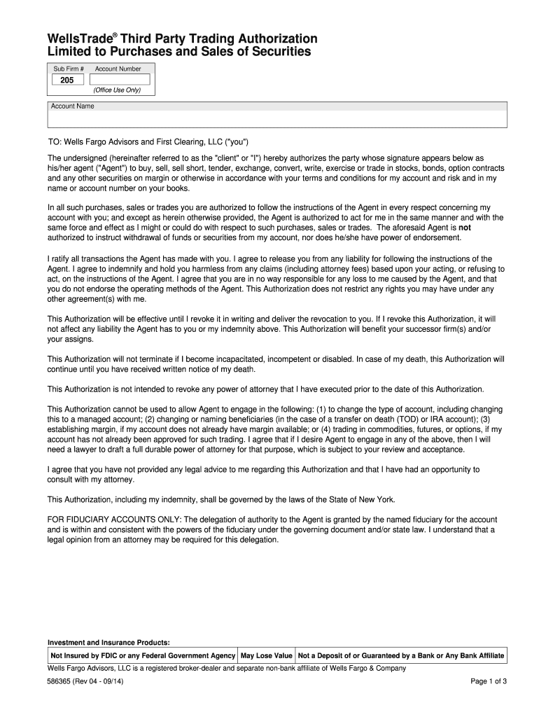 Get the free WellsTrade Third Party Trading Authorization