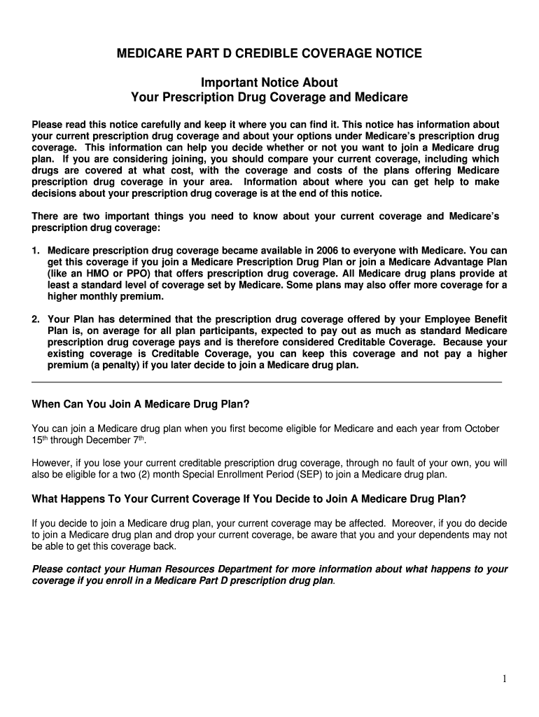 MEDICARE PART D CREDIBLE COVERAGE NOTICE