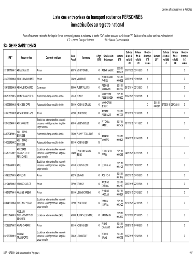 Denier rafraichissement LE 06/02/23Liste DES enterprises DE transport router DE PERSONNEL