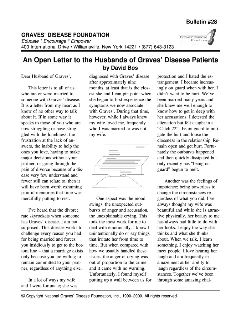 Bulletin #28 GRAVES DISEASE FOUNDATION Educate * Encourage * Empower 400 International Drive Williamsville, New York 14221 (877) 6433123An Open Letter to the Husbands of Graves Disease Patients by