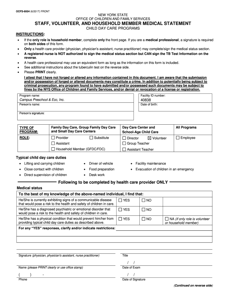 ocfs staff medical form