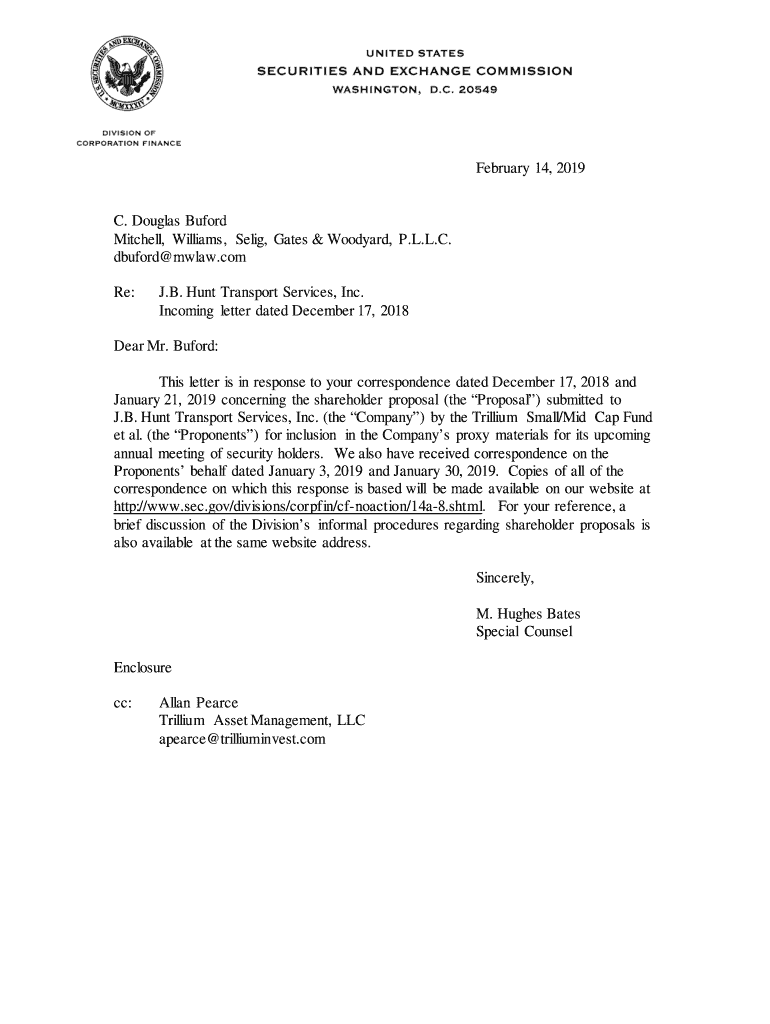 Get the free J.B. Hunt Transport Services, Inc.; Rule 14a-8 no-action letter