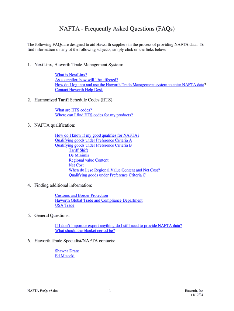 Get the free NAFTA Certificate of Origin FAQ's - Haworth Healthcare