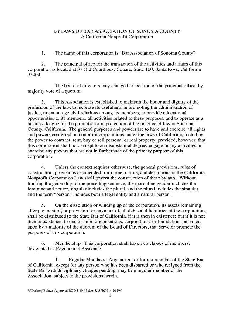 Get the free BYLAWS OF BAR ASSOCIATION OF SONOMA COUNTY A California - sonomacountybar