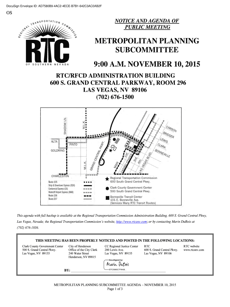 DocuSign Envelope ID: AD7580B94AC24ECEB7B1642C3AC0AB2FOSNOTICE AND AGENDA OF