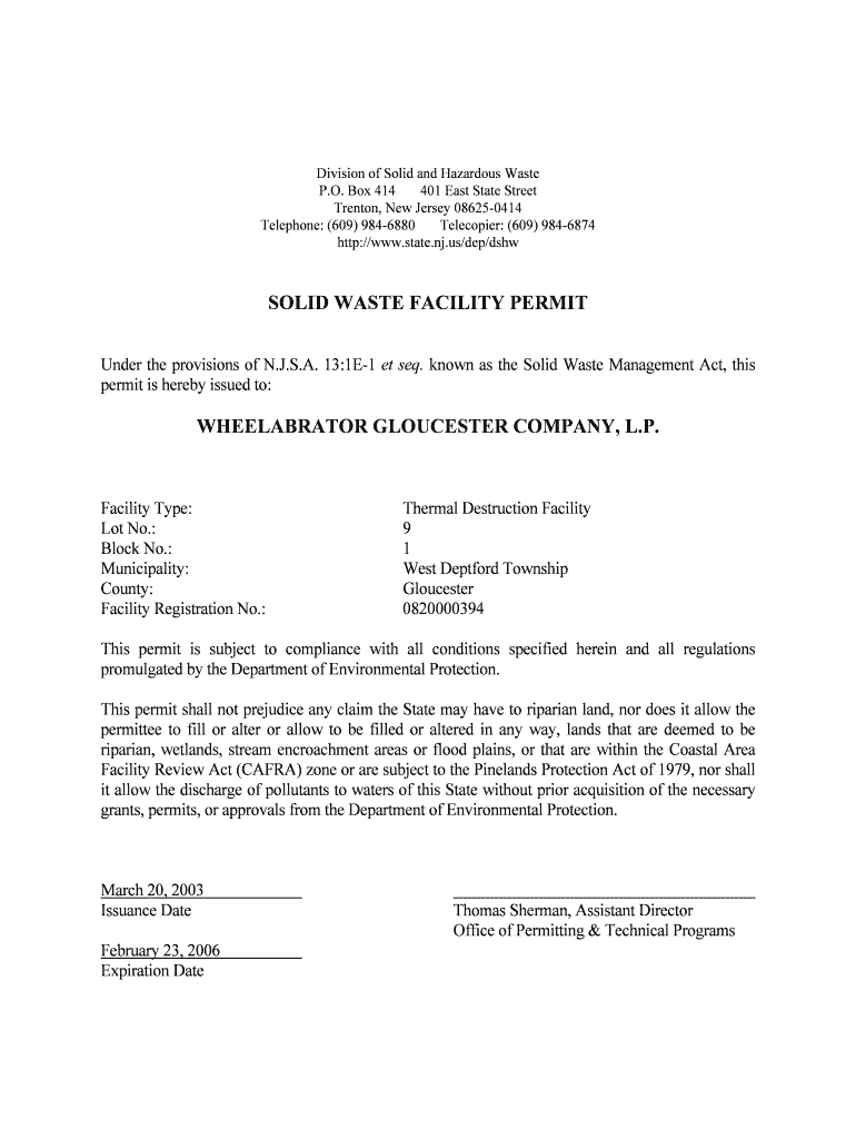 Get the free solid waste facility permit capital health system, inc. - DocPlayer.net