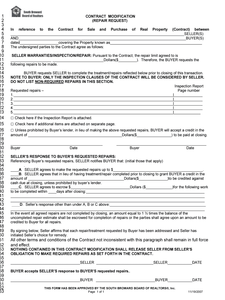 Get the free Contract Modification Repair Request