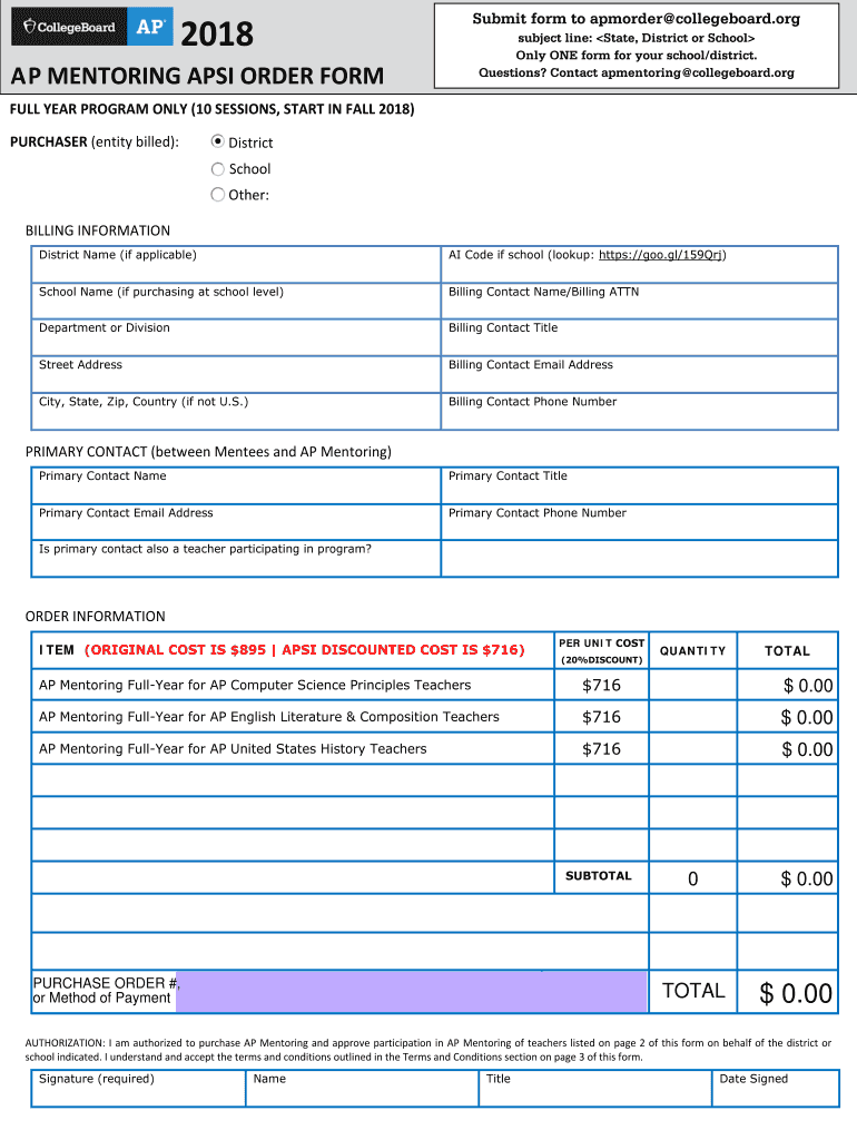 Fill out your ap mentoring apsi order online with pdfFiller!