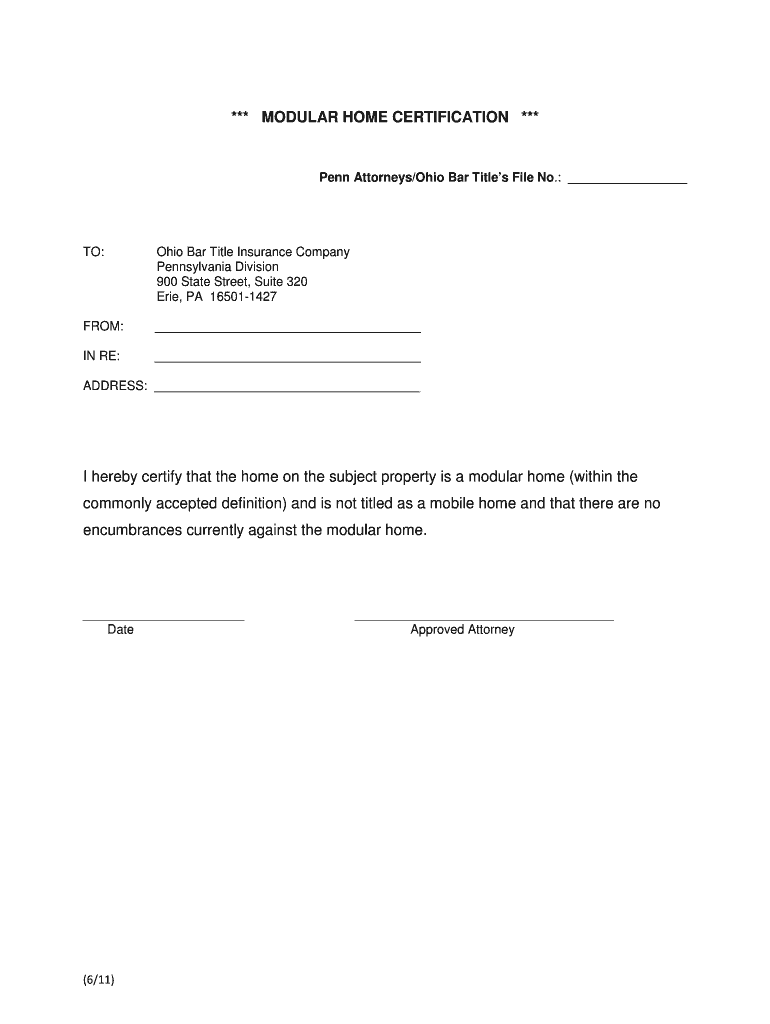 Get the free Modular Home Certification