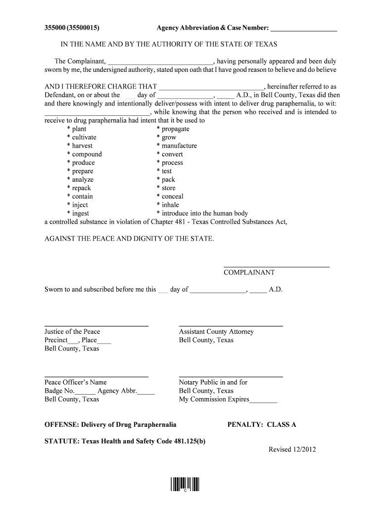 Get the free Texas Drug Paraphernalia Complaint Form