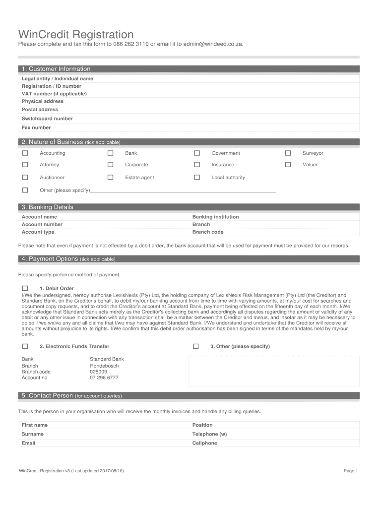 Get the free WinCredit Registration - WinDeed