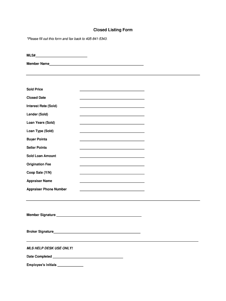 How to fill out the Closed Listing Form