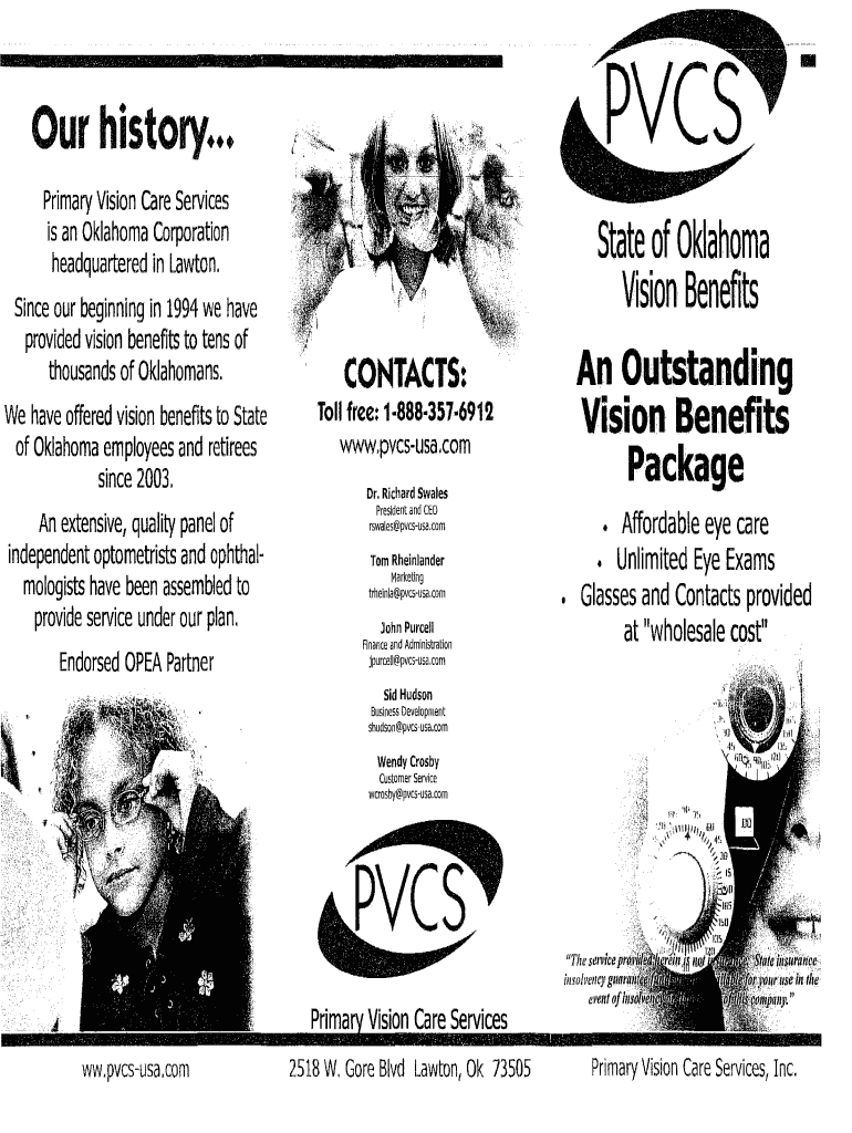 Our history. Primary Vision Care Services is an Oklahoma Corporation headquartered in Lawton. Since our beginning in 1994 we have provided vision benefits to tens of thousands of Oklahoman's. State