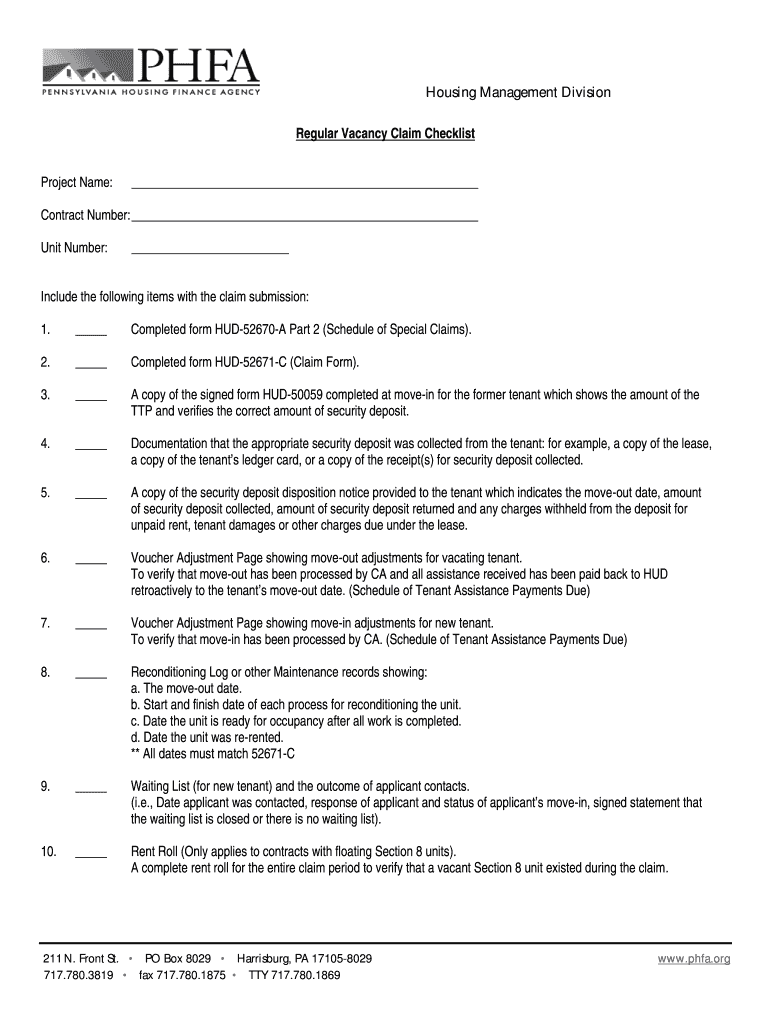 The HUD Regular Vacancy Claim Checklist is a property management document used by housing managers to submit claims for vacant units.