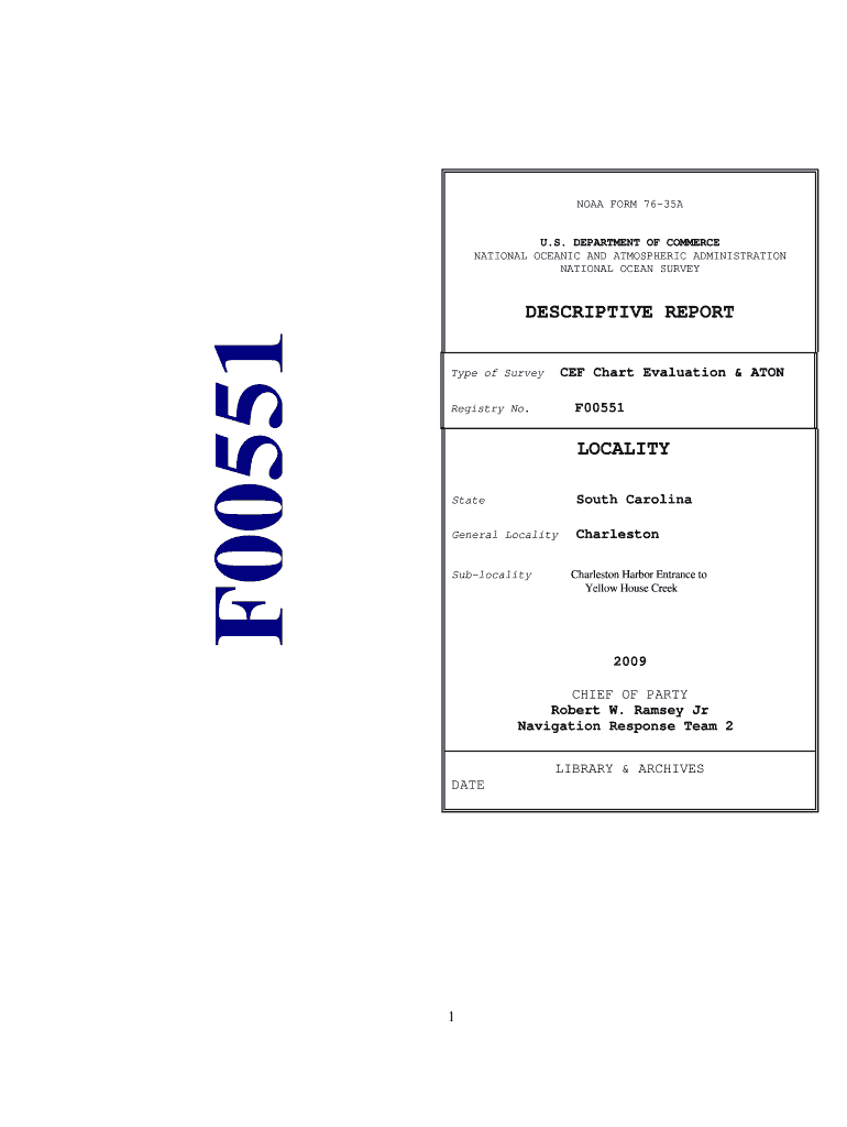 NOAA FORM 7635AU. S. DEPARTMENT OF COMMERCE NATIONAL OCEANIC AND ATMOSPHERIC ADMINISTRATION NATIONAL OCEAN SURVEYF00551DESCRIPTIVE REPORT CEF Chart Evaluation & Tintype of SurveyF00551Registry No.