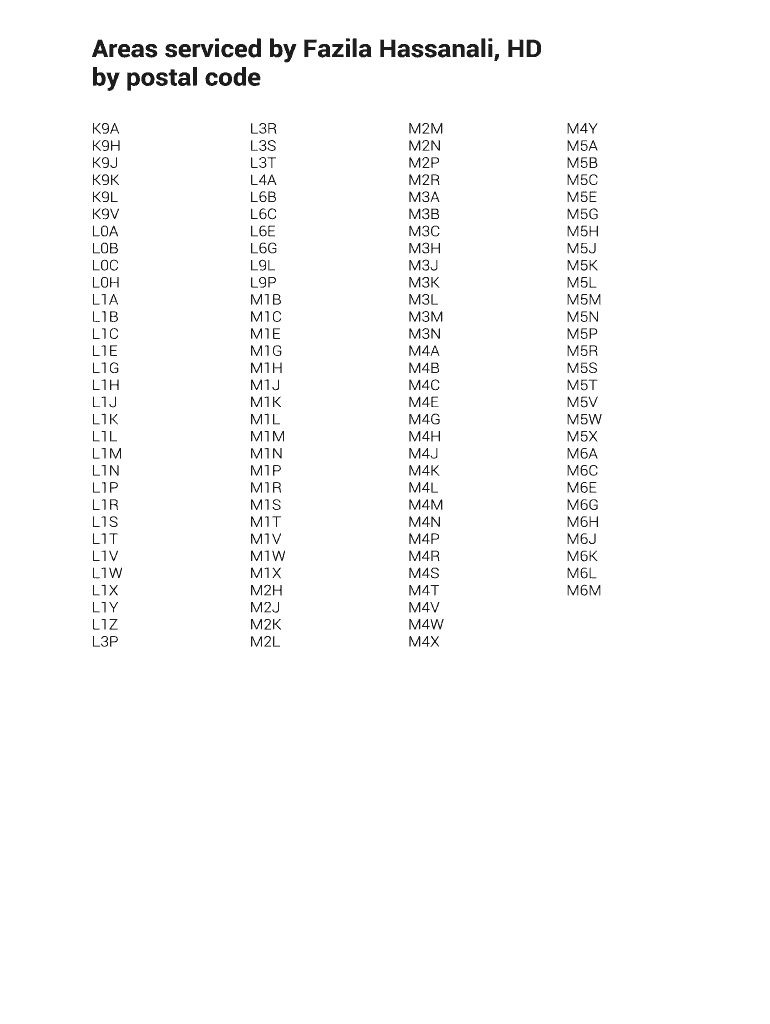 Get the free Areas serviced by Fazila Hassanali, HD by postal code