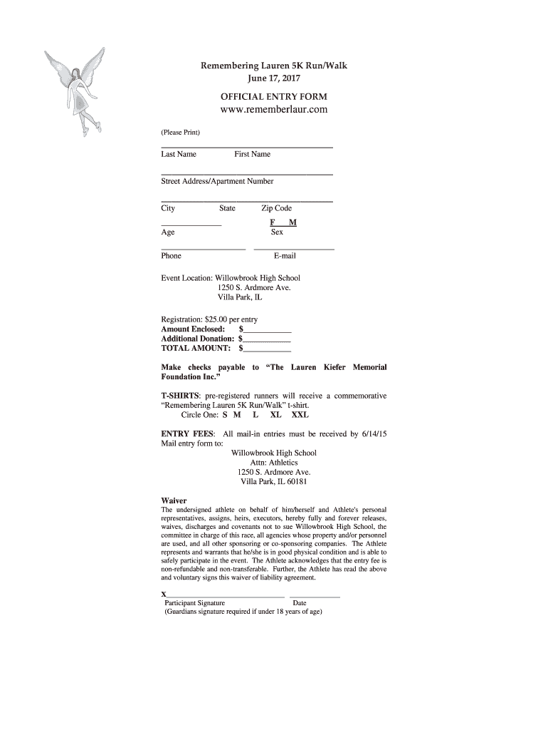 Fill out your remembering lauren 5k runwalk online with pdfFiller!
