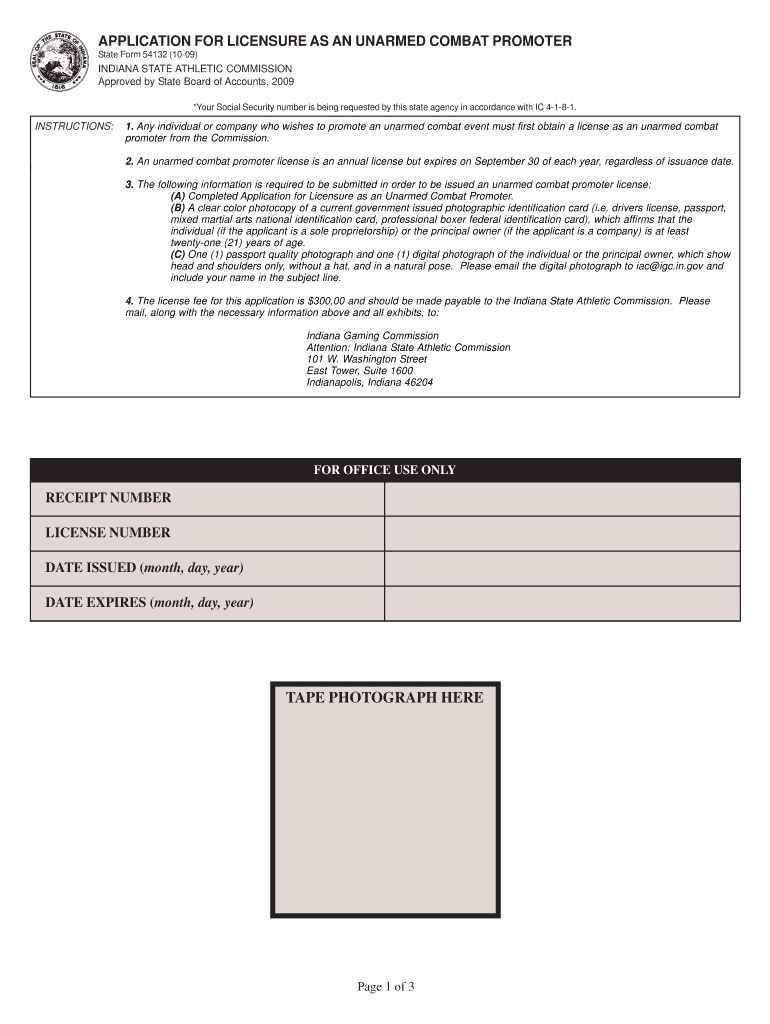 State Form 54132 (1009)INDIANA STATE ATHLETIC COMMISSION