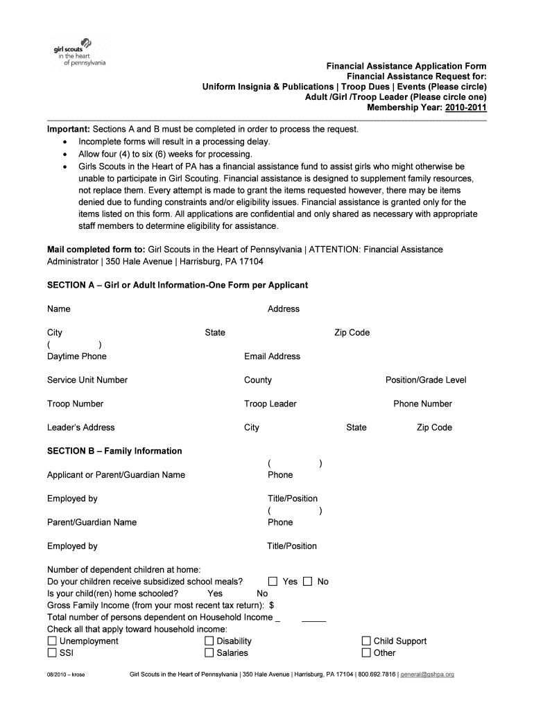 Edit your financial assistance application form form online