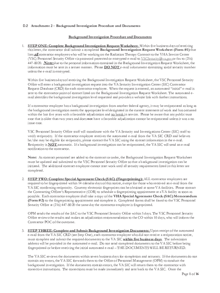 Background Investigation Procedure and Documents Pkg 2016-2026 free printable template