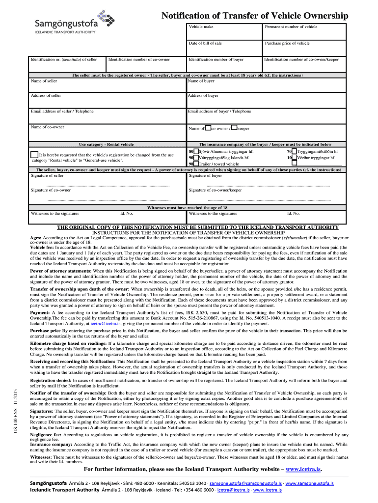 Get the free English Notification of bTransfer ofb Vehicle bb - Samgngustofa