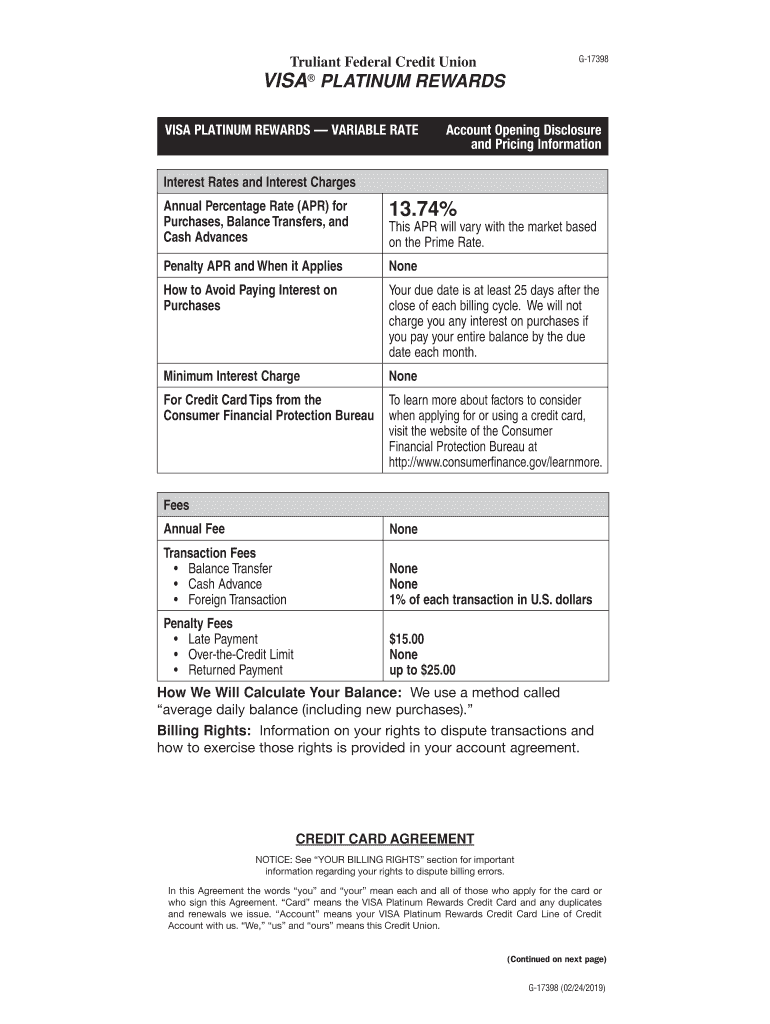 Reliant Federal Credit UnionG17398VISA PLATINUM REWARDS VISA PLATINUM REWARDS VARIABLE RATEAccount Opening Disclosure and Pricing InformationInterest Rates and Interest Charges Annual Percentage Rate