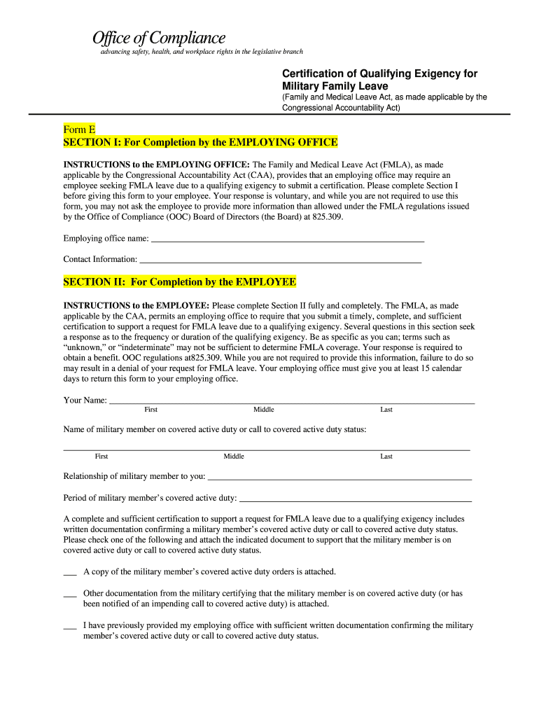advancing safety, health, and workplace rights in the legislative branchCertification of Qualifying Exigency for
