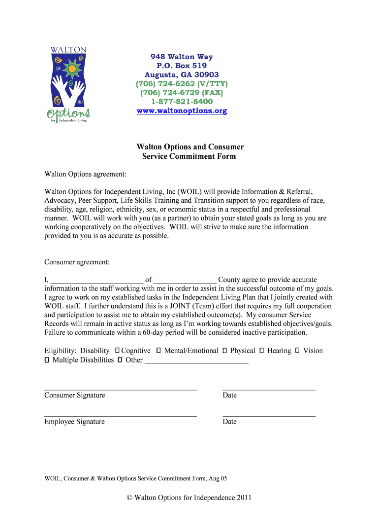 Get the free Walton Options and Consumer Service Commitment Form - ilru