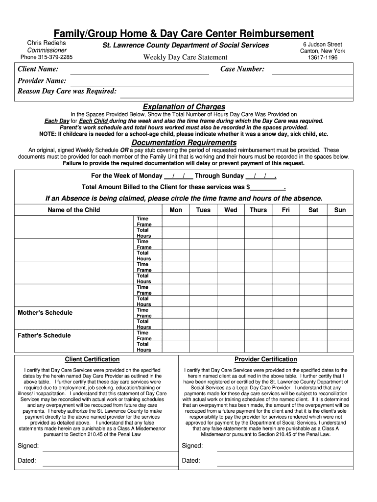 To utilize the Weekly Day Care Reimbursement Form, clients and providers must meet specific eligibility criteria. Residents of St. Lawrence County should consider the following requirements: