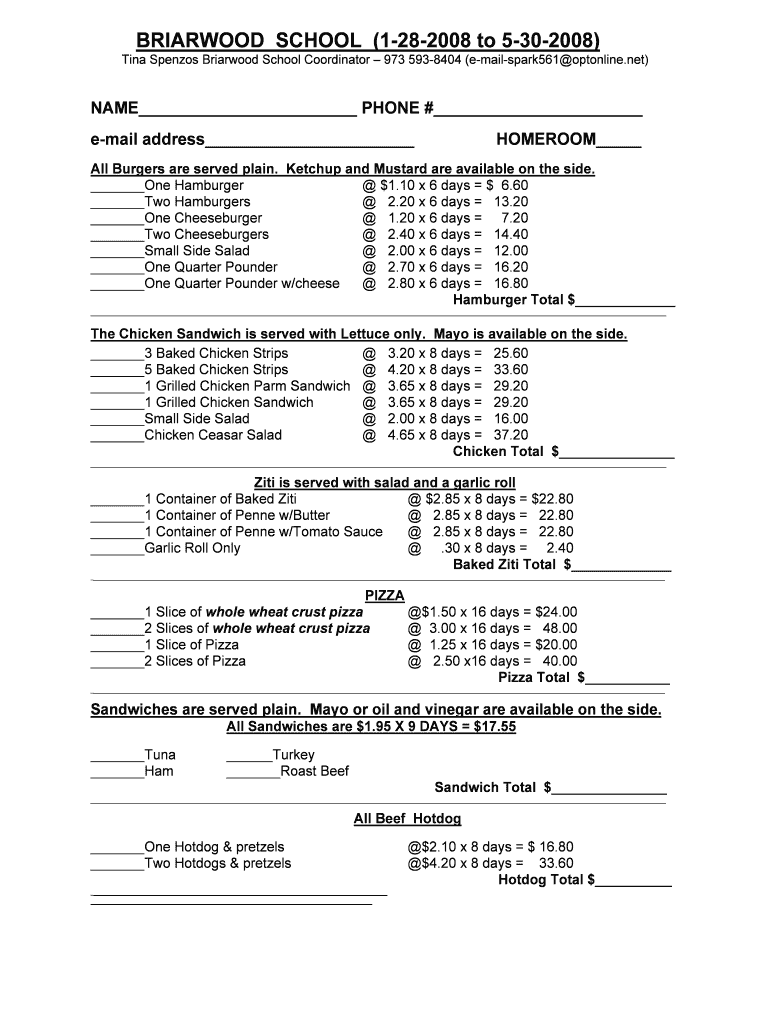 Get the free Briarwood order form january 08 - Florham Park School District - fpks