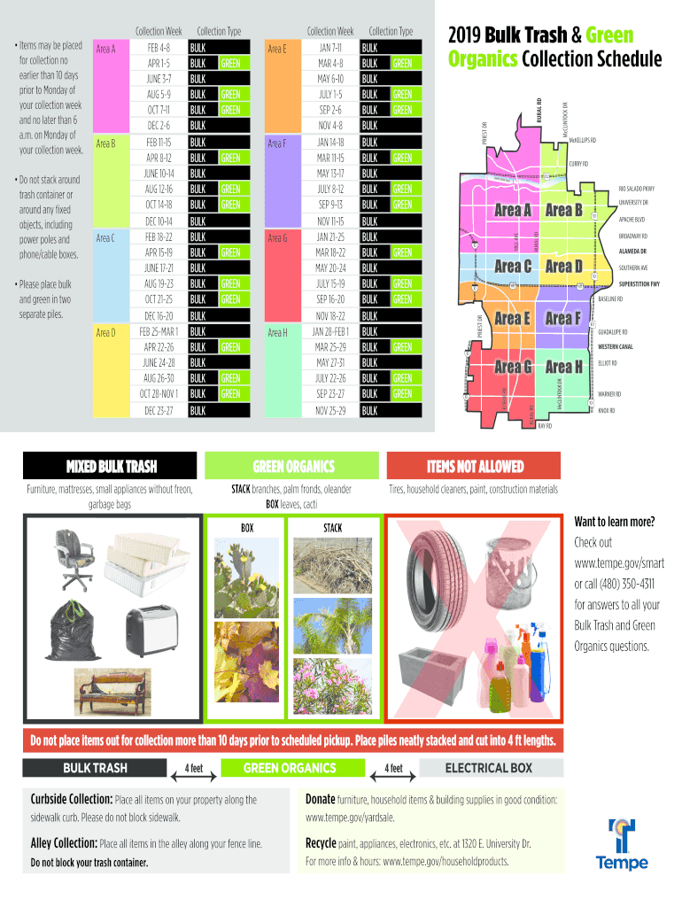 Area McClintock RURAL RD2019 Bulk Trash & Green Organics Collection ScheduleMcKELLIPS RD CURRY TEMPE TOWNLAKERIO SALADO PKWYArea SUPERSTITION Area Area Area G Area Tires, household cleaners, paint,