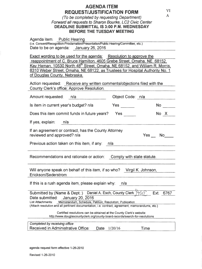 AGENDA ITEM REQUEST/JUSTIFICATION FORM VI A(To be completed by requesting Department) Forward all requests to Sharon Burke, LC2 Civic Center DEADLINE SUBMITTAL IS 3:00P. M. WEDNESDAY BEFORE THE TUESDAY