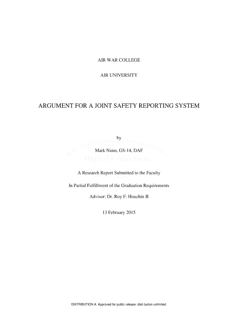 AIR UNIVERSITYARGUMENT FOR A JOINT SAFETY REPORTING SYSTEM by