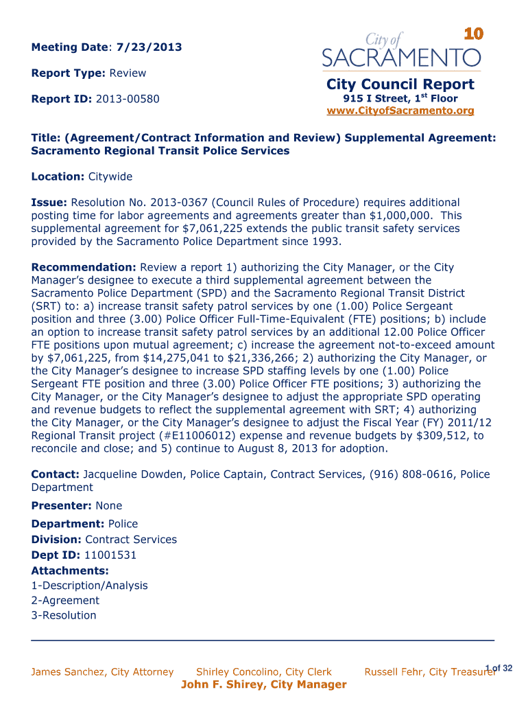 www.CityofSacramento.orgTitle: (Agreement/Contract Information and Review) Supplemental