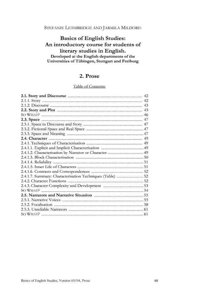 STEFANIE LETHBRIDGE AND JAMILA MILFORD: Basics of English Studies: An introductory course for students of literary studies in English. Developed at the English departments of the Universities of Tubing,