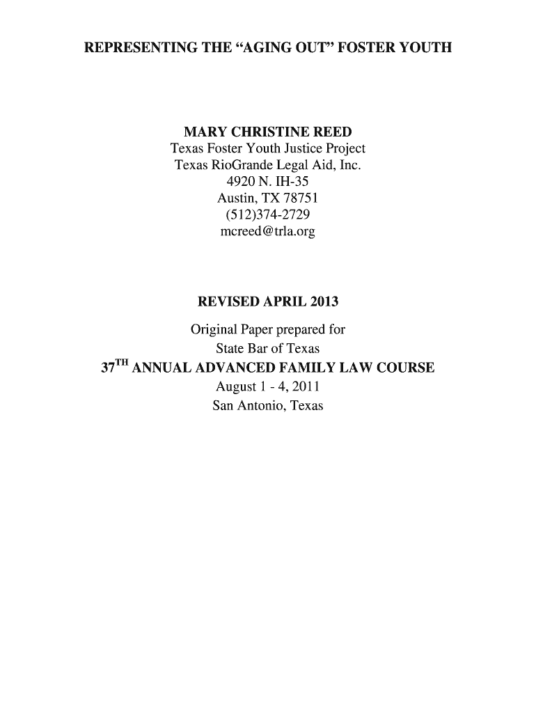 Get the free Representing the Aging Out Foster Youth - bInformationb for Attorney bb - texasfoste...