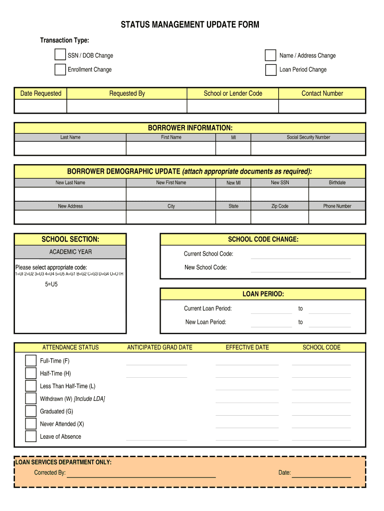 Get the free Student Loan Status Management Update Form