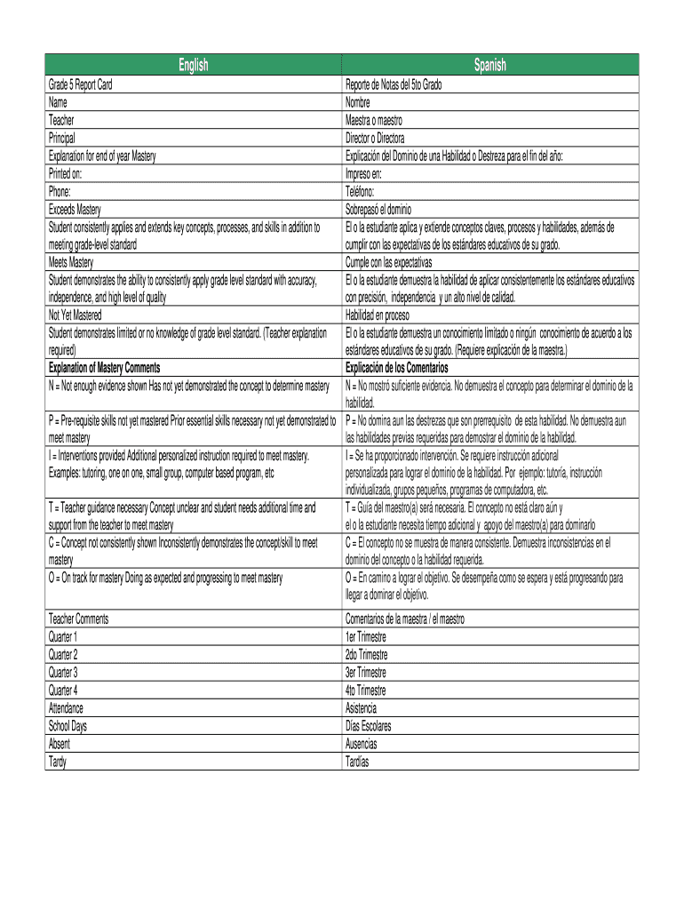 Grade 5 Report Card