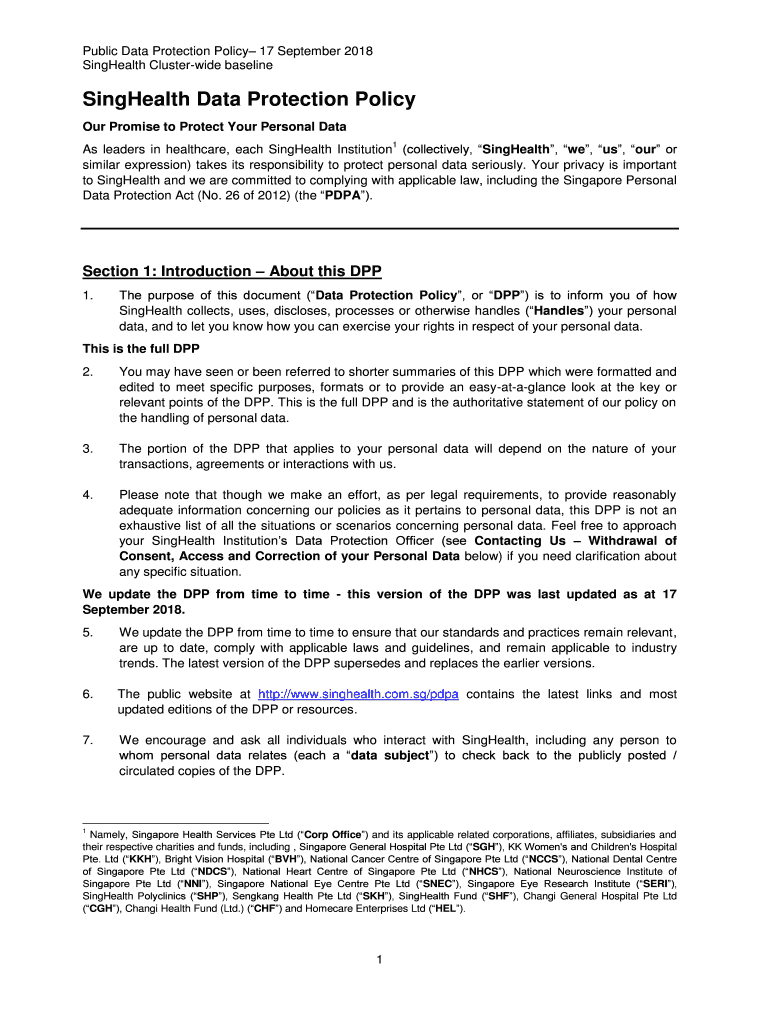 SingHealth Cluster wide baselineSingHealth Data Protection Policy