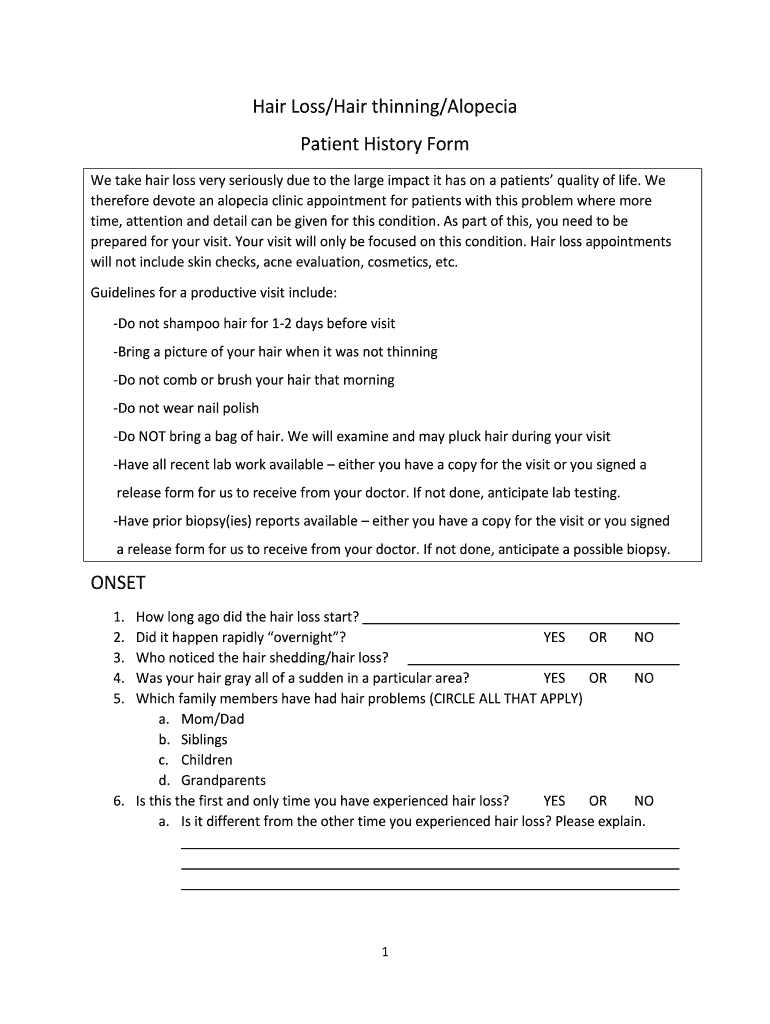 Get the free Hair Loss/Hair thinning/Alopecia Patient History Form