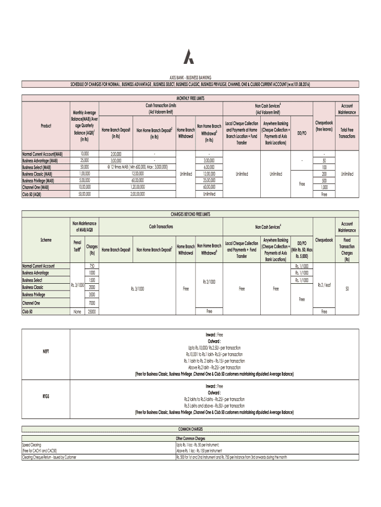 Get the free Fees & Charges - Business Advantage Account - Axis Bank