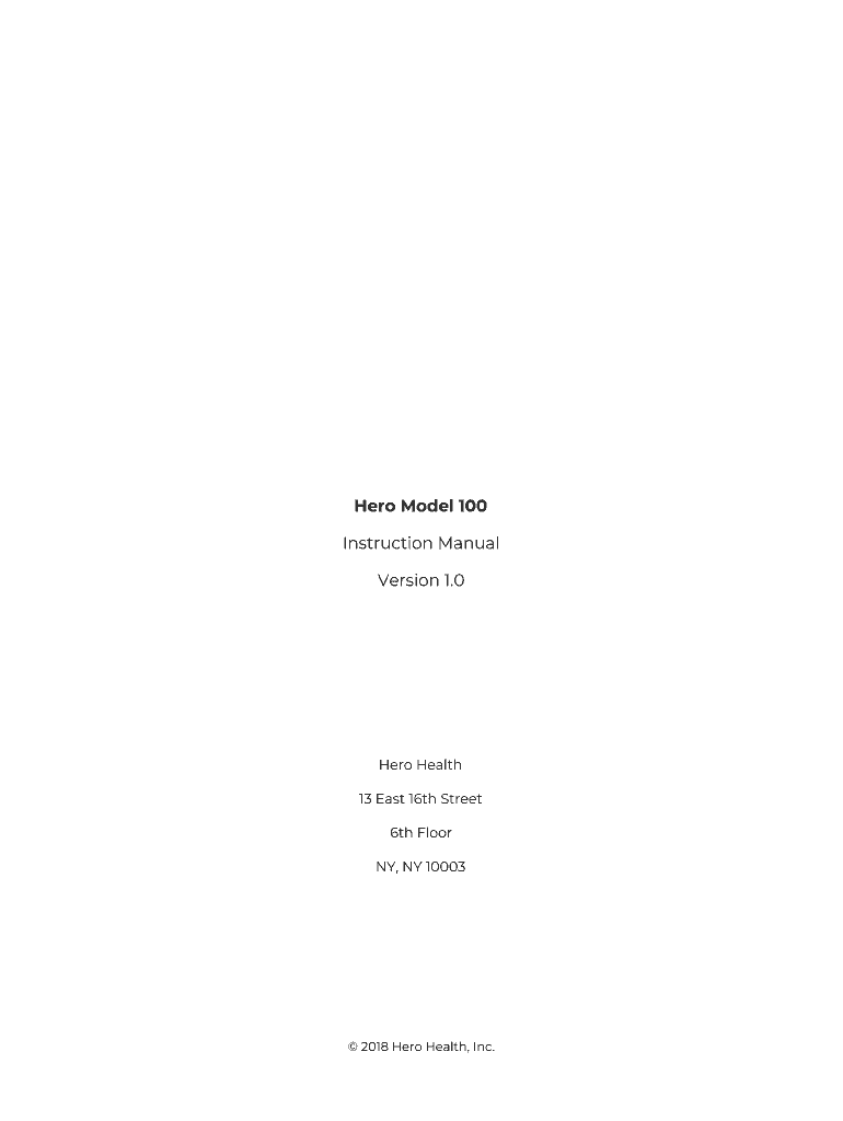 Hero Model 100 Instruction Manual Version 1.0 Hero Health 13 East 16th Street 6th Floor NY, NY 10003 2018 Hero Health, Inc. Table of Contents Legal Notices3Warnings and Intended Use3Introduction4Hero